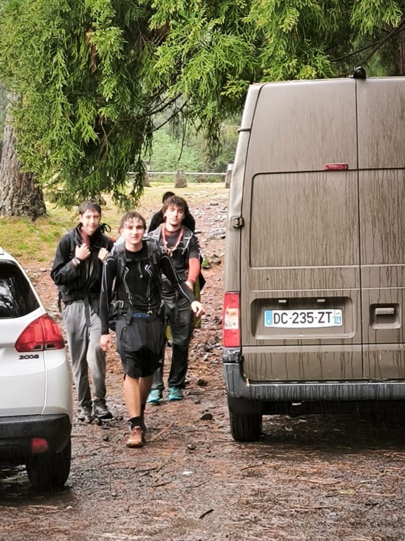 n’en suis pas sûr, tant, au retour, l’atmosphère était plutôt électrique. Nous plions rapidement le camp au gite pour entamer la descente vers notre 4ème nuitée. La descente fut plus rapide mais toujours soumise à une pluie et un effort constant. Nous entendions l’annonce des arrivées successives comme un regain d’énergie pour aborder la marche suivante et la suivante et la suivante.