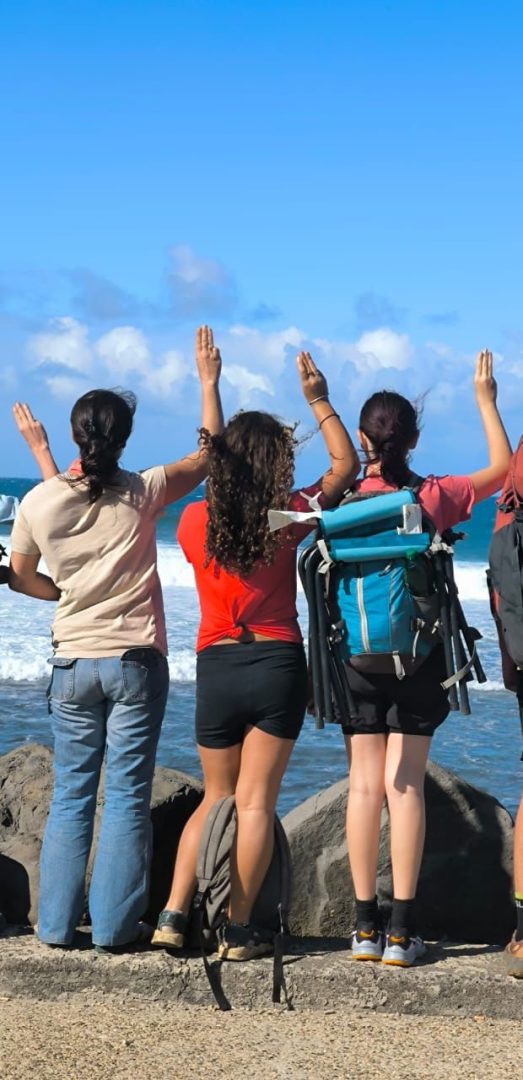 L’objectif de cette première journée était de rejoindre le point GPS dans la commune de l’Entre-Deux en passant par la ville de St Louis, Rivière St Louis, en prenant le bus et en marchant ensemble. Les trois groupes (fort heureusement !) sont arrivés à bon port. Nous, les chefs, dans notre Kamtar national faisant office de voiture-balai-soute, nous restions à bonne distance (des talkies-walkies) pour intervenir en cas de complication.