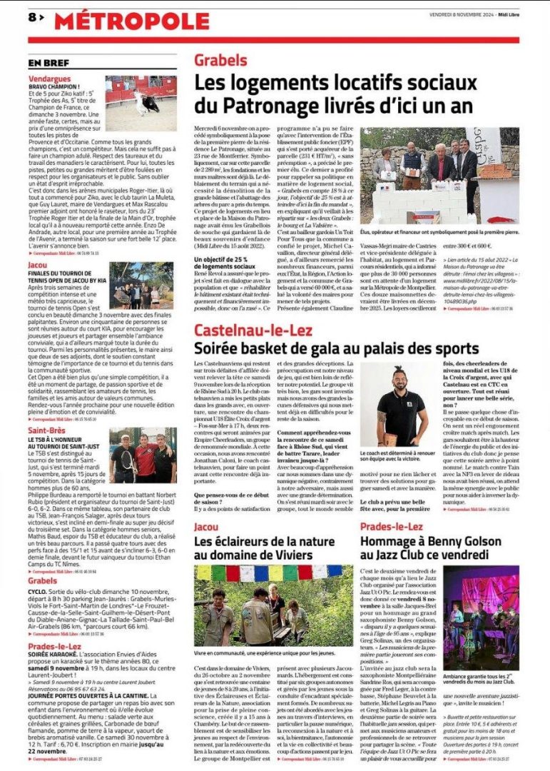 Midi Libre, novembre 2024 : Les EDLN au Domaine de Viviers